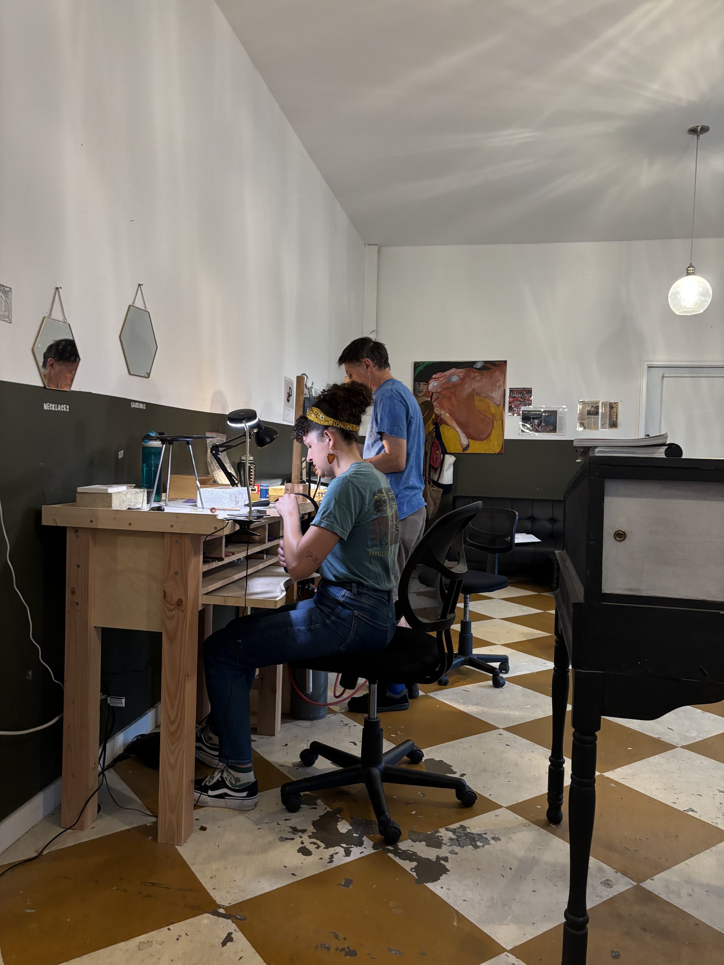 Sign up for classes Beginner Fabrication Tuesdays 6PM-9PM $200.00 Wednesdays Beginner Fabrication $200.00 Intermediate + Advanced Fabrication in Jewelry $200.00 Individual or Group Workshops from $300.00 wedding ring DIY workshop $500.00 Zoom Lessons, or Private Lessons $75.00